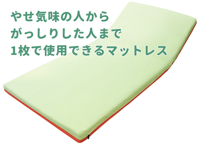 そのため、やせ気味の方は体への当たりがやさしくなり、 がっちりした体型の方は沈み込みすぎず、しっかりと支えることができます。