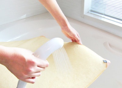 この素材は水をため込みにくく、 シャワーで流して洗うことができます。