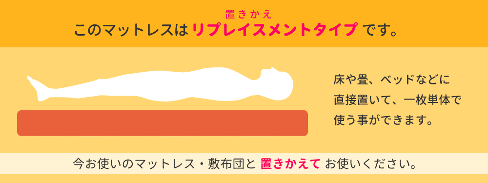 ただし、タイミングや種類によっては、お時間をいただく場合もあります。 お急ぎの場合は、事前にご連絡ください。状況に合わせてご案内いたします。 Q:今使っているマットレスでも大丈夫でしょうか?