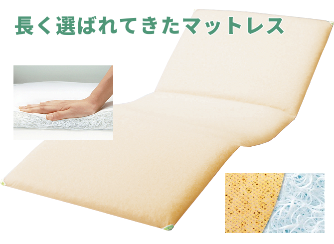 ハッピーおがわのマットレスこのマットレスは、 体をしっかり支えながら、動くときに力が伝わりやすい ように作られています。